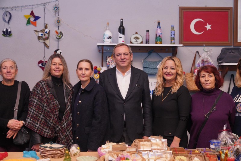 Ayvalık Belediyesi Mahalleevleri’nde üretime katılan kadınlar, el emeği ürünlerini Yılbaşı Pazarı’nda satışa sunarak hem ekonomiye hem de aile bütçelerine katkı sağlıyor.