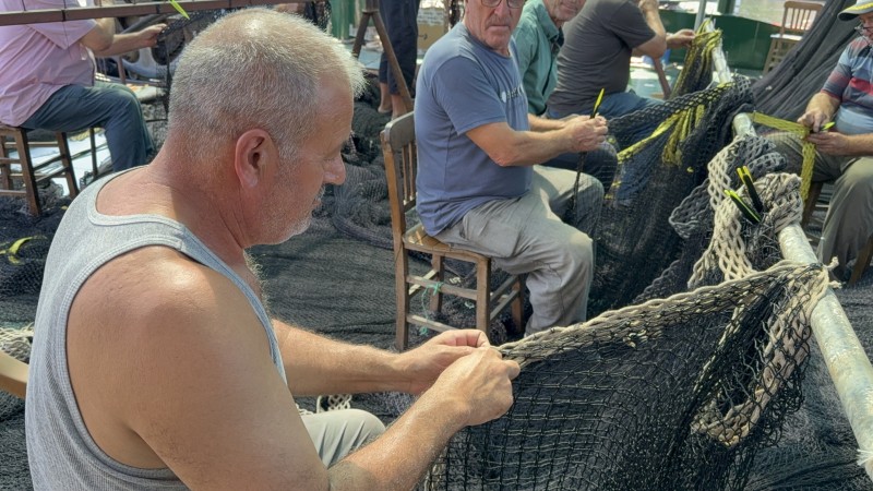Erdek ilçesine bağlı Kestanelik Mahallesi'nde balıkçılar, 1 Eylül'de başlayacak olan av sezonu için hazırlıklarını sürdürüyor. Tayfalar, denize açılmadan önce ağlarını onararak avlanmaya uygun hale getirmek için son düzenlemeleri yapıyor.