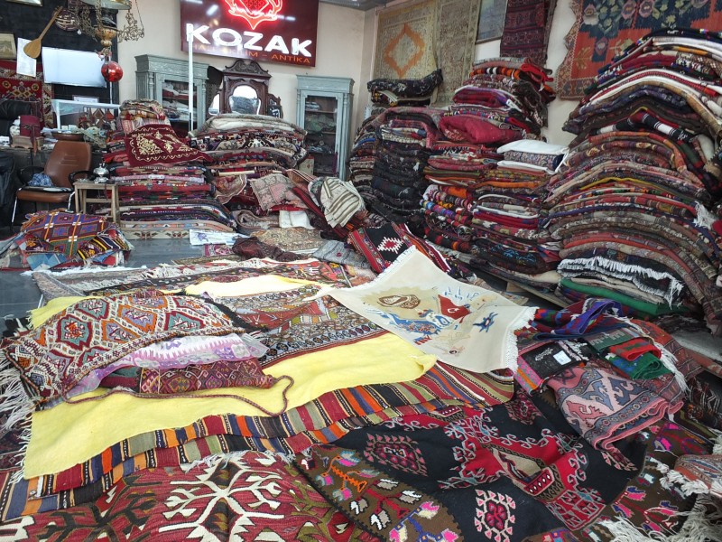Edremit’in Bostancı Mahallesinde Çanakkale -İzmir Karayolunda eski kilim ve halı işi yapan Çağatay Bayramoğlu ve Mehmet Bozok, turistlerin yoğun ilgi gösterdiğini anlatırken, 7-8 senedir halı kilim işi yaptıklarını söylediler. Halı ve kilimleri köylerden topladıklarını anlatan antikacı Çağatay Bayramoğlu, “7-8 senedir bu işi yapmaktayız. Köylerden topladığımız halıları toz dolabına atıp tozlarını temizliyoruz. Revize edilecek halıları revize ediyoruz. Kurtarmayacak halıları da kesip kırlent yapıyoruz. Turistler bu kırlent ve bu kilimlere oldukça fazla ilgi gösteriyor. Bunlar el dokuması olduğu için değerli. Kıymetli şeyler bunlar. Bunların her biri sanat eseri olarak oldukça kaliteli ve güzel şeyler. Yün bunlar. Tamamen doğal-Evlerde genelde plastik naylon halılar kullanılıyor ama, yün halıların kullanılmasını biz tercih ederiz. Bunları da elimizden geldiğince tanıtıp anlatmaya çalışıyoruz” dedi. Emekli öğretmen Mehmet Bozok da, “Halıcı bir köyde büyüdüm yetiştim. Onun için bu halılarla hiç bağım kesilmedi. Emekli olduktan sonra da yine bu işin içindeyim. Arkadaşlarla birlikte bu işi yürütüyoruz. Alıp bu şekilde kırlent yapıp, yelekler yapıp değerlendirmeye çalışıyoruz. Değerlendirilmesini istiyoruz. Kendim de bazen köylerden gelen haberler üzerine köylere gidip alıyorum. Onlarla takas yoluyla ticarette yapıyoruz. Her şeyin en güzelini yapmaya çalışıyoruz” dedi.