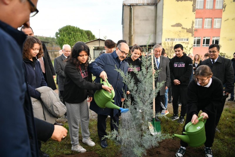 Yüzüncü Yıl Eğitim Ormanı Fidan Dikim Etkinliğine, Balıkesir Valisi İsmail Ustaoğlu, İl Milli Eğitim Müdürü Ali Tatlı, Balıkesir Orman Bölge Müdürü Kemal Kayıran, katılım sağladı. (Ebru Erdem)