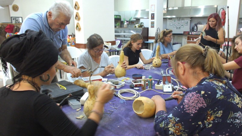Öğretmenler Mahallesi'ndeki 'Pegasus Süslü Kadınlar Kahvesi'nde düzenlenen su kabağı işleme atölyesi de ilgi gördü. Kadınlar ellerinde küçük matkaplarla su kabaklarına şekil verirken, çalışmaya katılmaktan mutlu olduklarını söylediler. Çalışmalara katılan kadınlara teşekkür eden işletmeci Arzu Kılıç, atölye çalışmalarının artarak devam edeceğini söyledi. Festival düzenlediklerini anlatan işletmeci Arzu Kılıç, “Bu hafta 2 günlük festival düzenledik. Bunun öncesinde de duyurduk. 2 günlük festival içerisinde de çeşit çeşit atölyeler koyduk. Örneğin şu anda içeride kabak oyma atölyesi yapılıyor. Kabak oymayı öğreniyorlar gelen arkadaşlar. Yarın gene gün içerisinde çeşitli atölyelerimiz olacak. Biz bunları zaman içerisinde daha da artırarak ve geliştirerek devam ettirmeyi düşünüyoruz” dedi.
