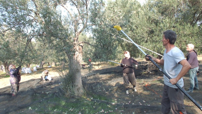 Burhaniye de zeytinliklerde hasat başlarken, pek çok üreticide hasatta makine kullanımına başladı. Makineler, hasatta büyük kolaylık sağlarken, genç dalları kırmadığı içinde verimin artmasına neden oluyor. Üretici Lütfü Mert de, Ziya Uysal, Gülten Semiz ve Birgül Güllü’den oluşan ekibi ile zeytin hasadı yapıyor. Eskiden sırıkla yapılan hasat, büyük oranda makineye dönerken, dalları kırmayan makinelerin gelecek yılın verimine de olumlu etki yaptığı kaydedildi. Makineleri daha çok erkekler kullanırken, kadınlarda makine kullanmaya başladı. Makine ile hasat yaptıklarını kaydeden Lütfü Mert, "Zeytincilikte hepten makine sistemine geçilmesini isterim. Biz bunlarla rahat ediyoruz. Bütün çiftçilerin makineli sisteme geçmesi lazım. Makineler ağaçlara da zarar vermiyor" dedi. Emekli Ziya Uysal da, "Genç yaşta emekli oldum. Şimdi zeytin hasadında çalışıyoruz. Makineleri kullanıyoruz. Makineler işimizi gayet kolaylaştırıyor. Daha güzel. Ağaçlara zarar vermiyor. Keşke makineler daha çok kullanılsa. Ağaçlara zarar vermediği içinde seneye daha iyi zeytin oluyor" dedi. Kadın işçi Birgül Güllü ise, "Biz normalde zeytinciyiz zaten. Çoktandır yapıyoruz bu işi. Bir iki senedir makineler çıktı. Şimdi makinelerle yapıyoruz bu işi. Güzel yani. Makineler çıktı, işimiz kolaylaştı" dedi.