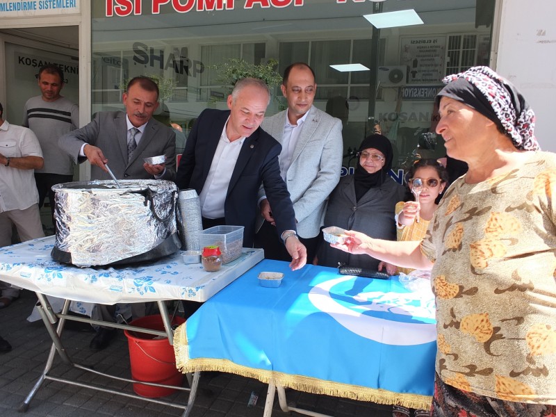 Burhaniye’de MHP’de yeni ilçe başkanı İsmail Zeybek ile ilçe yönetim kurulunun birlikte düzenlediği aşure hayrı ilgi gördü. Aşure dağıtımı öncesinde, din görevlisi Samet Gezer, Kuran okurken, Müftü Mustafa Ali Işık da dua yaptı. Duanın okunmasının ardından, Balıkesir Milletvekili Ekrem Gökay Yüksel ile İl Başkanı Niyazi Tunç ile teşkilatlardan sorumlu il başkan yardımcısı Halil Şen aşure dağıtımını başlattı. 2 kazanda hazırlanan aşure yaklaşık bin kişiye ikram edilirken, İlçe Başkanı İsmail Zeybek, katılımcılara teşekkür etti.