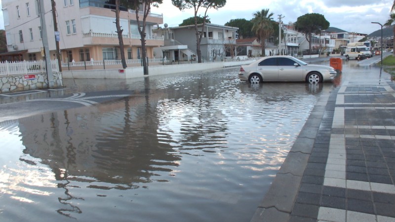 Edremit Körfezi'nde dünden beri devam eden yoğun lodos fırtınası hayatı olumsuz etkilerken, Öğretmenler Mahallesi'nde plajı aşan deniz suları kordon boyu caddesini göle çevirdi. Belediye işçileri caddedeki suları boşaltmak için tıkanan rögarları açarken, iş makineleri de Öğretmenler Mahallesi ve Ören Plajı'nda deniz kenarına kumdan barikatlar oluşturdu. Fırtına nedeniyle yollarına devam edemeyen 5 adet yük gemisi ise Edremit Körfezi'ne sığındı. (İHA)