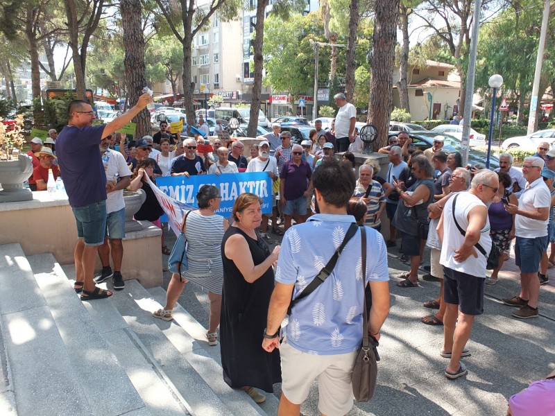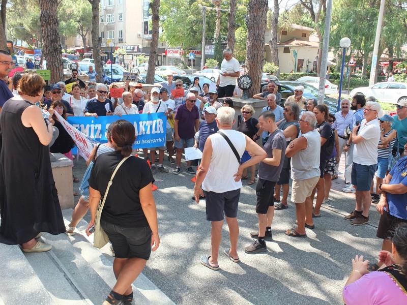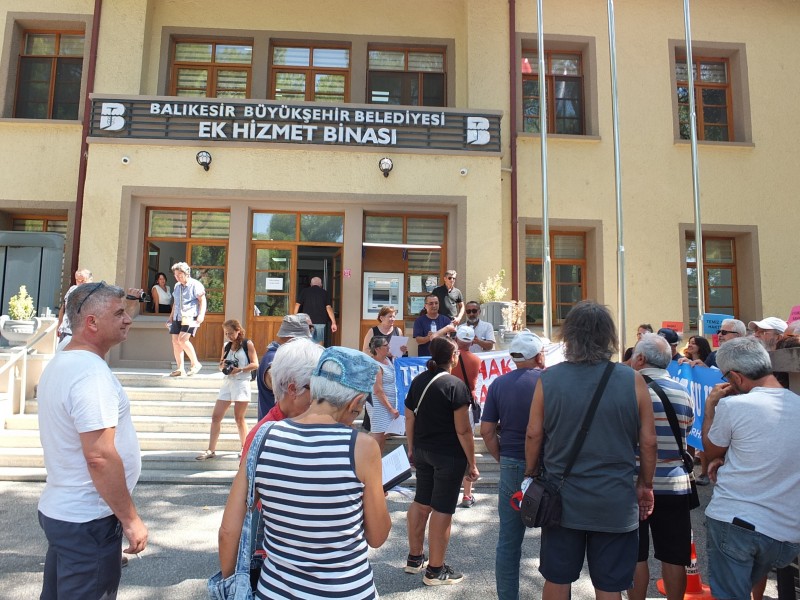 Burhaniye’de dişlerini bile çeşmeden akan suyla temizleyemediklerini kaydeden vatandaşlar, soruna çözüm bulunmasını istedi. Çeşitli mahallelerden alınan su numunelerini de getiren vatandaşlar, temiz su istiyoruz şeklinde sloganlar attı. Burhaniye Baski önündeki basın açıklamasını da Burhaniye Su İnsiyatifi üyelerinden avukat Filiz Sonsuz yaptı. Ellerinde dövizler ile sloganlar atarak Baski protesto edilirken yapılan basın açıklamasında, “Suyu içmekten, kullanmaktan korkuyoruz. Su, bildiğimiz su değil. Yaklaşık bir buçuk aydır Burhaniye, Ali Çetinkaya Mahallesi ve Bahçelievler Mahallesi’ndeki evlerimizde musluklardan akan suyumuz tuzlu, acı, paslı, yağlı. Yaptırdığımız tahlil sonuçlarına göre, suyun içerisindeki katı madde miktarı, yani su olmayan, suda olmaması gereken maddeler, normal değerlerin 7-8 katına ulaşıyor Bazı mahallelerimize günün bazı saatlerinde su verilmiyor ya da suyun basıncı düşüyor. Bu duruma çoğunlukla habersiz yakalanıyoruz Belki bazen Baski’den gelen bir kısa mesajla önceden haberdar olabiliyoruz. Sadece Burhaniye merkez mahalleleri değil, kırsal mahalleler de susuzlukla adeta sınanıyor. Çallı, Kuyucak ve Avunduk mahallelerine tankerlerle su taşınıyor. Daha düne kadar çeşmelerinden su akan bu mahalleler artık tankerle gelecek suyu bekliyor. Uzun yıllardır ya tadı kötü olduğu ya da güvenilir olmadığı için içemediğimiz şebeke suyuyla artık bazı mahallelerimizde diş fırçalayamıyoruz. Sabun köpürmüyor, el yıkanmıyor, duş alınamıyor, bulaşık, sebze meyve yıkanamıyor, yemek yapılamıyor, çay demlenemiyor, çamaşır, bulaşık makineleri, kombiler bozuluyor ve ishal kusma vakaları artıyor” sözlerine yer verildi.