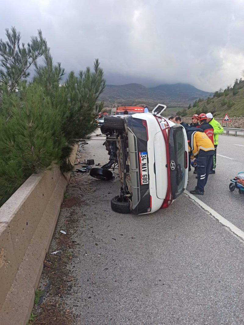 Balıkesir'de direksiyon hakimiyetini kaybeden sürücü beton bariyere çarptı. Kazada yan yatan otomobilin sürücüsü, yaralı olarak sağlık ekiplerine teslim edildi.