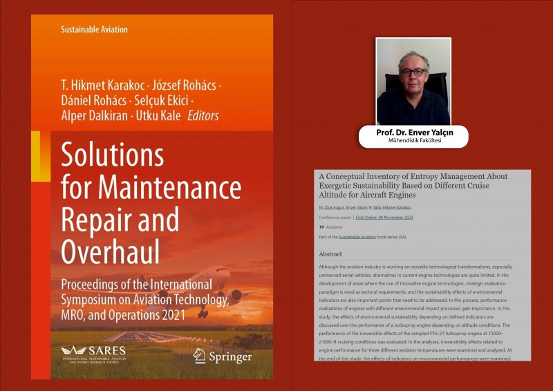 “A Conceptual Inventory of Entropy Management About Exergetic Sustainability Based on Different Cruise Altitude for Aircraft Engines” başlıklı çalışma, Sustainable Aviation tarafından basılan 2023 yayın tarihli “Solutions for Maintenance Repair and Overhaul” kitabında yayınlandı. (Ebru Erdem)