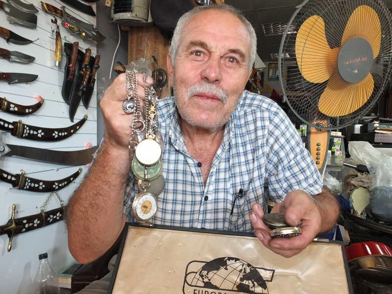 Muğla'nın Fethiye ilçesinde, makine imalatı yaparken emekli olan makine teknisyeni Hanefi Efe, 15 yıl önce Burhaniye'ye taşındı.1,5 yıl önce Taylı Caddesinde dükkan açan 66 yaşındaki Hanefi Efe, bir taraftan eski eşyalar satarken, bir taraftan da elektrikli ev aletleri tamiri yapıyor. Efe'nin 1970 yıllarda başlayan eski saat merakı devam ederken, binin üzerinde köstekli, kurmalı ve otomatik saatin sahibi oldu. Eski saatlere gözü baktığını anlatan Efe, işini severek yaptığını söyledi. Saatleri çok sevdiğini anlatan Hanefi Efe, “1970 den sonra hakikaten bana bir heves geldi. Bunları toplamaya başladım. Sayılarını tam bilmiyorum. Ama binin üzerinde saat var. 400-500 tane köstekli var. 700-800 tane kurmalı kol saatleri ve otomatik saatler var. Serkisoflar var. İşte mesela elimde bir tane masa saati var. Masa saati bana söylenene göre 1860'da üretilmiş. Çok eski ama, çalışıyor. Yani sandık ürünü. Kendim makine imalatçısıyım, ama bunları eskiden beri çok sevdiğim için topladım. 2010'dan sonra Burhaniye'ye geldim. Burhaniye'de bu işin açık olduğunu gördüm. Bunlarla uğraşmaya başladım. Sevdikçe kendimi bunlara adamış oldum. Sadece saat değil tamirat işleri yapıyorum. Bu saatlerin tamirlerini, silimlerini, bakımlarını yaptırıyorum. Aynı çocuğuz gibi. Biz arada sırada satıyoruz. Sevenler geliyor buraya. Almaya gelenler satmaya gelenler oluyor. Ama, bu iş para ile değil hakikaten gönül işi. Yani sevmesen bu işi yapamazsın. Biz de zaten 65 yaşını geçtik. Bundan sonra bizi bu işi takip edecek bu işi yapacak elamanda bulamıyoruz. Sıkıntı da orada. Burada bu işin temizliği var. Bakımı var. Bizden sonraki geleceklere bunu aktarmak için biraz bu konuda sıkıntımız var. İnşallah, birisi gelirde bizden sonra bu işi devir alırda devam ettirir. Nesilden nesle inşallah, bu işi devam ettirir. Bilmiyorum biz bu kadar, elimizden geldiğince çalışıyoruz. Hakikaten ben zevk alıyorum. Bu işin tozu var. Zahmeti var. Ama, ayrı bir zevki var. Ayrı bir tadı var. Bizim kuşaklar da öldükten sonra inşallah, bunları devam ettiren bir nesil de inşallah olur”.