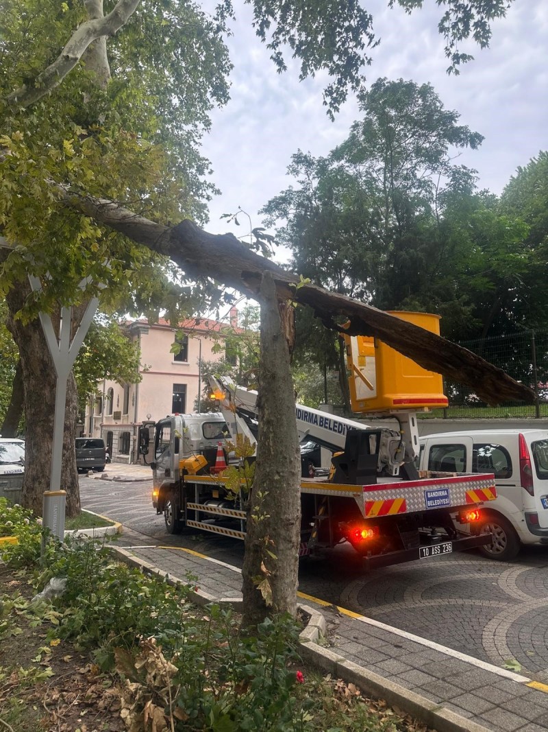 Meteoroloji Genel Müdürlüğü'nün günler öncesinden yaptığı uyarılar sonrası, İstanbul üzerinden gelen fırtına Bandırma'da gece saatlerinde etkisini artırdı. Yer yer dolu şeklinde görülen yağışla birlikte kuvvetli rüzgâr, çok sayıda ağacın devrilmesine, bazı ağaçların ise büyük dallarının kırılmasına neden oldu.