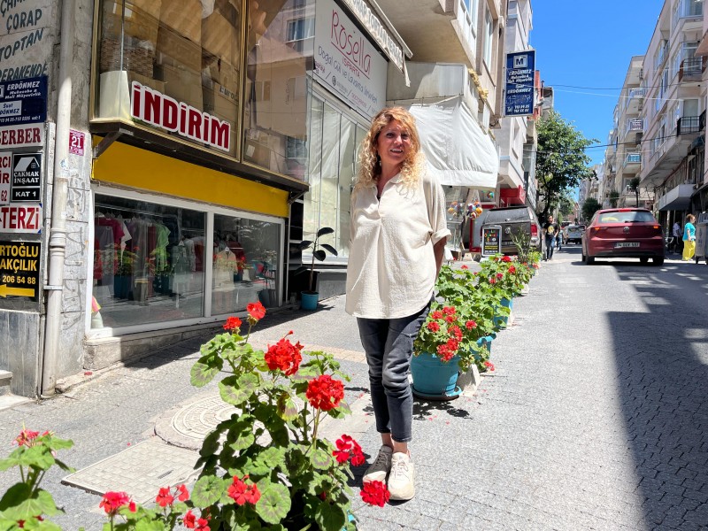 Balıkesir’in Bandırma ilçesinde kadın elinin değdiği sokak, deyim yerindeyse çiçek bahçesine döndü.