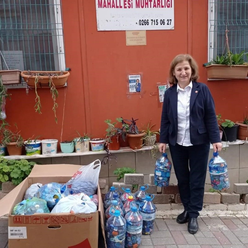Paşabayır Mahalle Muhtarı Belgin Şentürk, engelli bireylere destek amacıyla Paşabayır Mahallesi sakinleri ile birlikte mavi kapak kampanyasını sürdürüyor.
