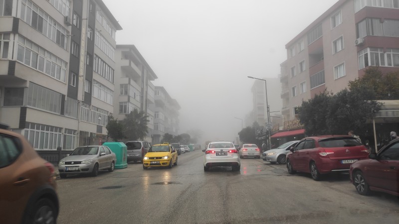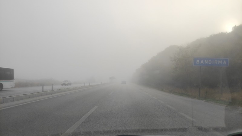 Bandırma ilçesinde sabah saatlerinde sis etkili oldu.