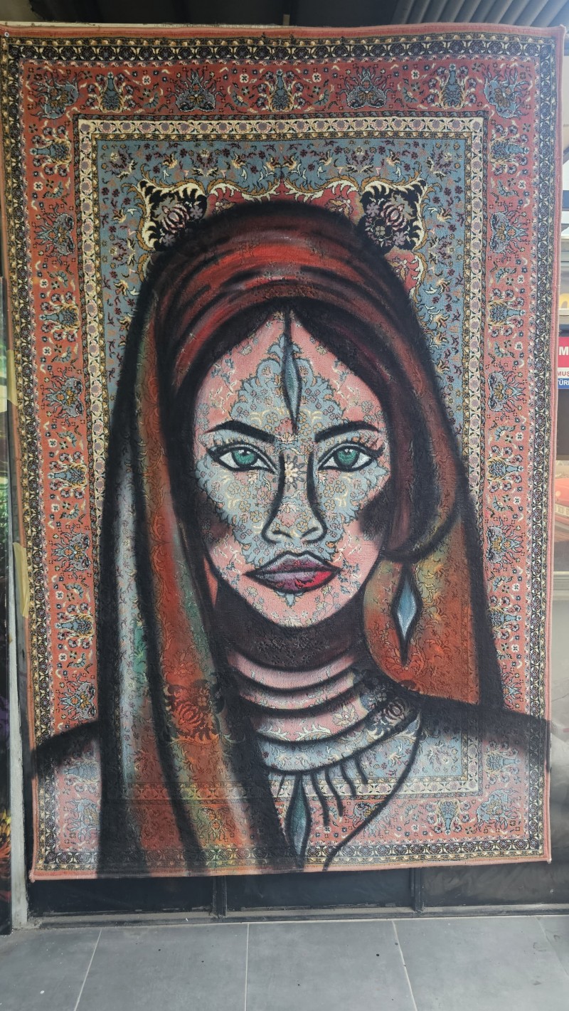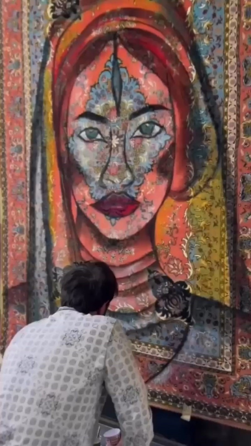 Dövme sanatçısı Erdinç Engin (32), kahve işletmecisi Erkan Yılan'ın sosyal medyada görüp beğendiği bir kadın figürünü halıya resmetti. Yılan'ın bin 500 liraya satın aldığı halı, Engin'in dokunuşuyla sanatsal bir esere dönüştü. Sprey boya ile yapılan bu çalışma, halının orijinal motifleriyle modern çizgileri buluşturarak mistik ve etkileyici bir görünüm kazandırdı.