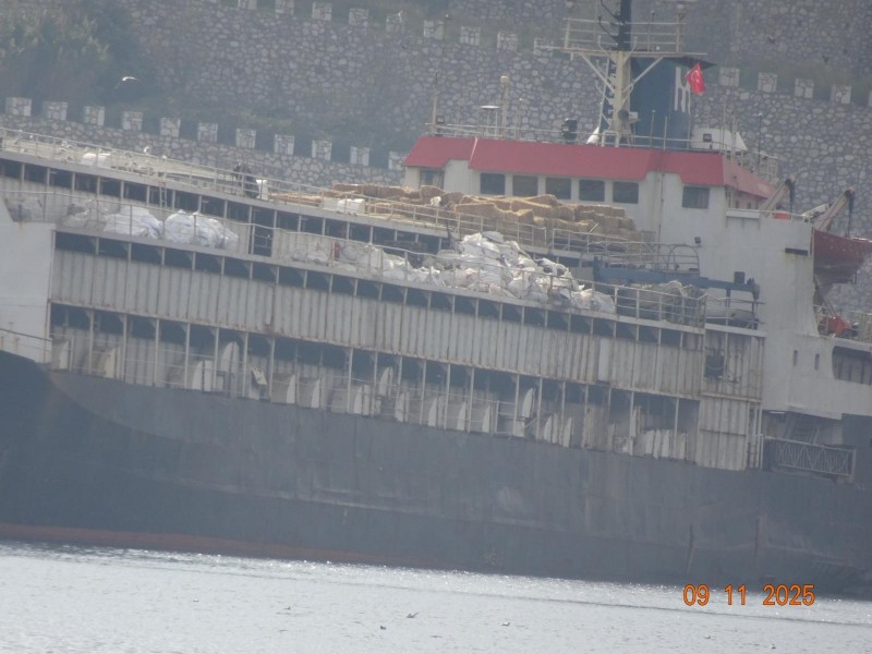 Bandırma ilçesi açıklarında demirleyen Spiridon-II isimli gemi yem, saman ve su takviyesi için Bandırma Çelebi limanına yanaştığında endişe verici görüntüler kaydedildi.