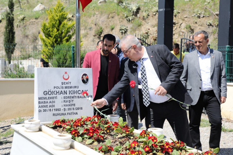 Edremit Belediye Başkanı Mehmet Ertaş, Ramazan Bayramı öncesinde ilçedeki şehitlikleri ve kabristanlıkları ziyaret etti. Şehitlerin, önceki belediye başkanlarının ve aile büyüklerinin kabirlerine karanfil bırakıp dualar okudu.