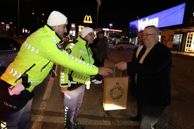 Edremit Belediye Başkanı Mehmet Ertaş, 2025 yılını vatandaşlarla birlikte coşkuyla karşıladı. 31 Aralık gecesi ilk olarak görev başındaki emniyet, jandarma, zabıta, itfaiye ve sağlık ekiplerini ziyaret ederek yeni yıl dileklerini ileten Başkan Ertaş, ardından Akçay Mahallesi’nde düzenlenen yeni yıl etkinliklerine katıldı.