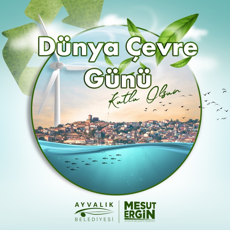 5 Haziran Dünya Çevre Günü kapsamında bir mesaj yayımlayan Ayvalık Belediye Başkanı Mesut Ergin, “Bugün, doğanın güzelliklerini ve çevremizi korumanın önemini bir kez daha hatırlıyoruz. Gelecek nesillere yaşanabilir bir dünya bırakmak için hep birlikte doğaya sahip çıkalım, çevremizi koruyalım ve sürdürülebilir çözümler üretelim. Her birimizin küçük katkıları büyük farklar yaratır. Doğamızı korumak için attığınız her adımda yanınızdayız. Mutlu ve sağlıklı bir çevre için, Ayvalık için hep birlikte çalışalım. Dünya Çevre Günü kutlu olsun” dedi. (Ayvalık Belediyesi)