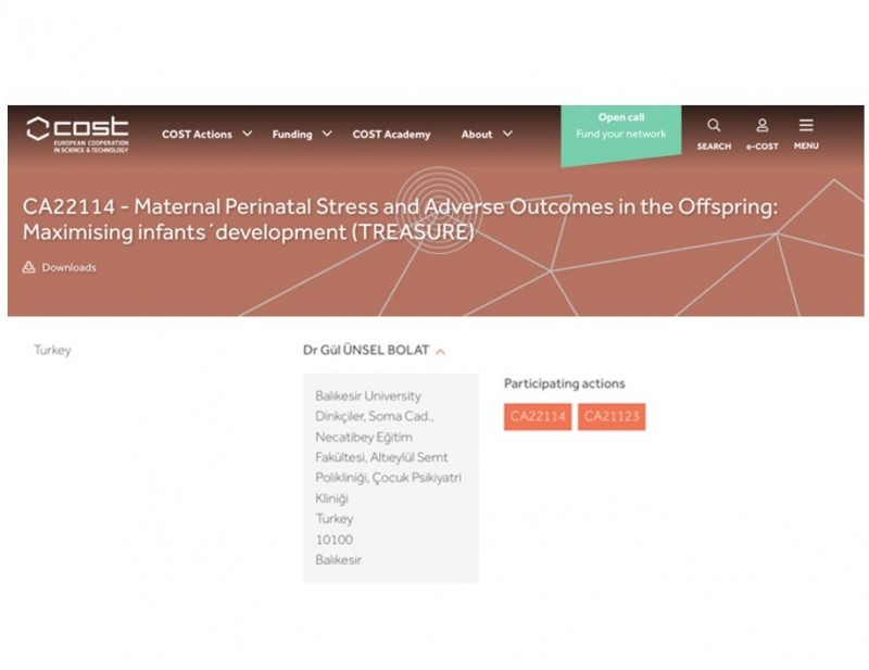 BAÜN Tıp Fakültesi Çocuk ve Ergen Ruh Sağlığı ve Hastalıkları Anabilim Dalından Doç. Dr. Gül Ünsel Bolat, Türkiye’nin de kurucu üyeleri arasında yer aldığı ve 52 yıldır Avrupa çapında alanlarında uzman bilim insanlarını çalıştıkları alan özelinde uluslararası bilimsel ağlarda bir araya getirerek, ulusal araştırmalarını sürdüren bilim insanlarını uluslararası alana taşımayı amaçlayan Bilim ve Teknolojide Avrupa İş birliği Kuruluşu (European Cooperation in Science and Technology-COST Association) yönetim komitesine seçildi. Doç. Dr. Gül Ünsel Bolat böylelikle komiteye Türkiye’den seçilen 2 araştırmacıdan birisi oldu.