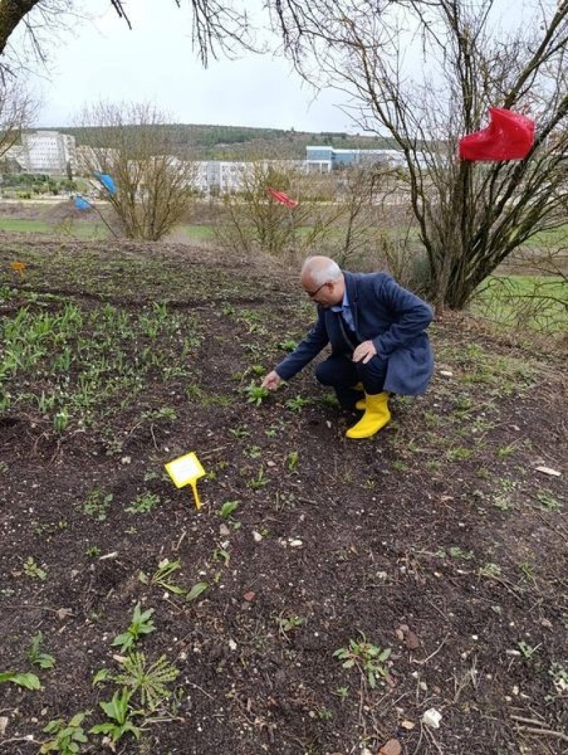 Balıkesir Üniversitesi Botanik Bahçesinde Soğanlı Bitkiler Bahçesinde incelemelerde buluna Prof. Dr. Fatih Satıl şu açıklamalarda bulundu: BAÜN Kampüs'ün en hakim tepesi olan bu saha Botanik bahçesinin ilk tematik bahçesi özelliğinde. Ekim ayında dikimi gerçekleştirilen soğanlı bitkilerin tamamı tuttu. Şimdilerde Çiğdemler ve Kardelenler çiçek açtılar. Balıkesir'in meşhur Beyaz Zambakları yapraklandı, mayıs ayı gibi zambaklarla birlikte siklamenler, ters laleler ve diğer soğanlı türlerin çiçek açmasını bekliyoruz. Önümüzdeki yıl içerisinde tıbbi ve aromatik bitki bahçesi projesi de hayata geçirildiğinde bu saha kampüsün en renkli alanı olacak.