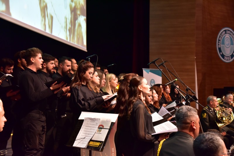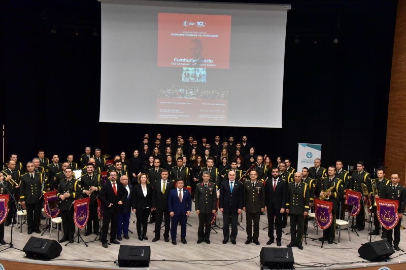 Balıkesir Üniversitesinde (BAÜN) Cumhuriyetimizin 100. Yılı etkinlikleri kapsamında; Bakım Mühimmat Okulu ve Eğitim Merkezi Bölge Bando Komutanlığı ve Balıkesir Üniversitesi Necatibey Eğitim Fakültesi Müzik Eğitimi Anabilim Dalı öğrencilerinden oluşan koro tarafından “Cumhuriyetimizin 100. Yıl Kuruluş Yıl Dönümü Konseri” gerçekleştirildi.