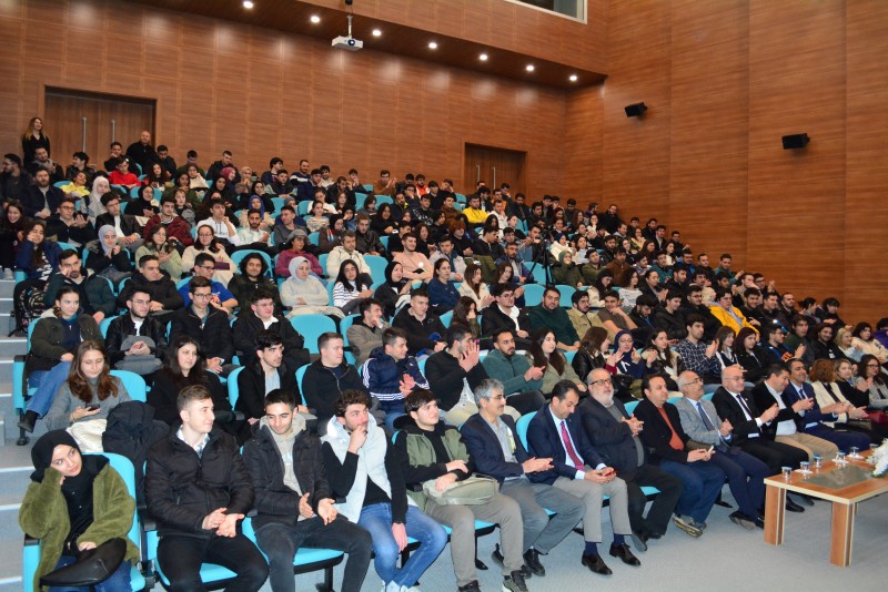 Akademik Danışmanlığını Prof. Dr. Ayhan İstanbullunun yaptığı Elektrik, Bilgisayar Sistemleri Öğrenci Topluluğu tarafından gerçekleştirilen konferans; Rektör Yardımcısı Prof. Dr. Murat Doğdubay tarafından Taşkın Koçak’a hediye takdimi ile sona erdi.