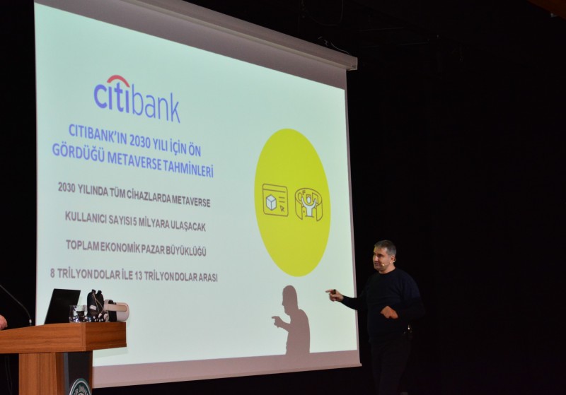 Taşkın Koçak, Metaverse evrenlerini oluşturan teknolojiler hakkında bilgi verdiği konuşmasında, Metaverse’nin günümüzün bir gerçeği ve vazgeçilmezi olduğunu ve Metaverse ile ilgili hazırlıkların yapılması gerektiğinin altını çizerek, sanal gerçeklik ve yapay zeka ile gelecekten bahsetti.