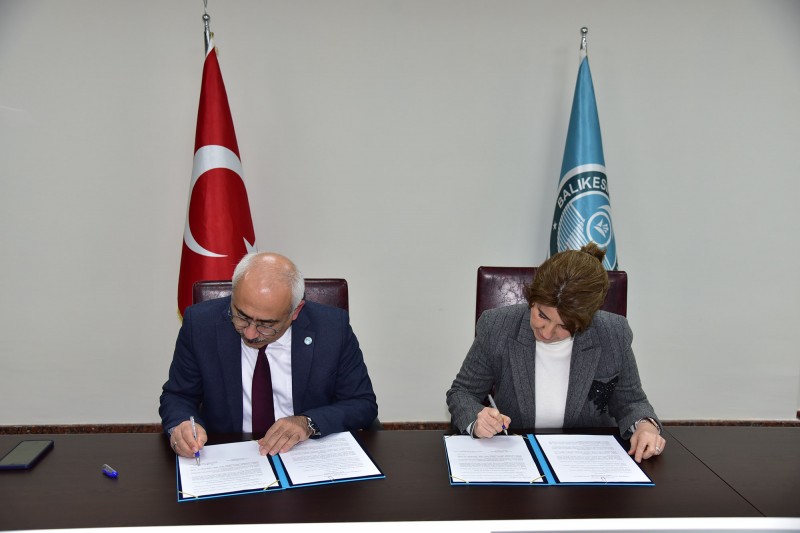 Rektörlükte gerçekleştirilen protokol imza törenine; Balıkesir Meslek Yüksekokulu Müdürü Doç. Dr. Fatmagül Tolun ile Balıkesir MYO Müdür Yardımcısı Öğr. Özgür Yılmaz da katıldı.
