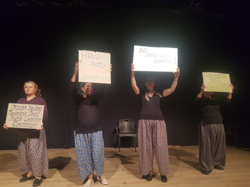 Bergama'ya bağlı Yukarıbey köyünden 5 kadın, Madra Dağı, köyün adetleri, yaşamı, çam ağaçlarının yaşamlarındaki yerini anlatan oyunu köy dışında ilk kez Ayvalık'ta sergiledi. Ayvalık Belediyesi’nin katkılarıyla sahnelenen oyunun metin yazarı Şeniz Turan ve Yukarıbey köyü halkı, yönetmeni Tuncay Akdeniz, Genel Sanat Yönetmeni Vedat Murat Güzel oldu. Büyük beğeni toplayan oyunun sonunda seyirciler, oyuncuları coşkuyla alkışladı. (İHA)