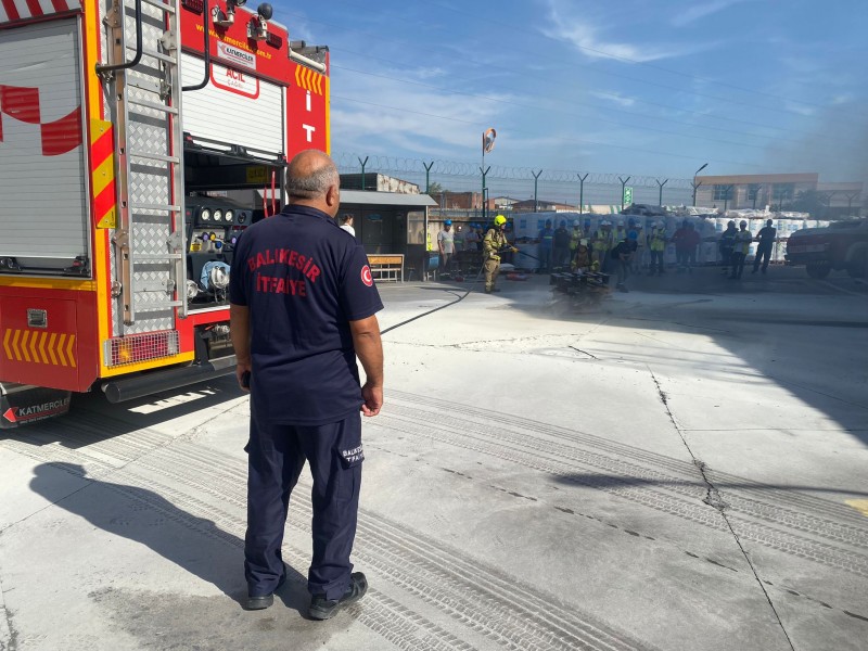 Balıkesir İtfaiyesi tarafından BEST fabrika avlusunda gerçekleşen eğitimde işçilere yangına ilk müdahale eğitimi verildi.
