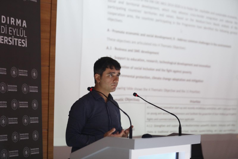Bandırma Onyedi Eylül Üniversitesi Bilimsel Projeler Koordinatörlü (BANÜ-PROJE) tarafından Prof. Dr. Fuat Sezgin Konferans Salonu’nda “Interreg Next Akdeniz Havzasında Bilgilendirme Ötesi İş Birliği” programı hakkında bilgilendirme eğitimi düzenlendi. Moderatörlüğünü BANÜ-PROJE Koordinatörü Doç. Dr. Miraç Kamışlıoğlu’nun üstlendiği iki günlük eğitim programı kapsamında ilk gün AB Başkanlığı Sınır Ötesi İş Birliği Daire Başkanlığı AB İşleri Uzmanı Övünç Güneş tarafından “Interreg Next Akdeniz Havzasında Sınır Ötesi İş Birliği Programı 2021-2027 Dönemi” hakkında genel bir sunum gerçekleştirildi. Ardından AB İşleri Uzmanı Kubilay Sitrava Ufuk 2020 ve Erasmus+ programlarının yer aldığı birlik programları hakkında bir sunum yaptı.