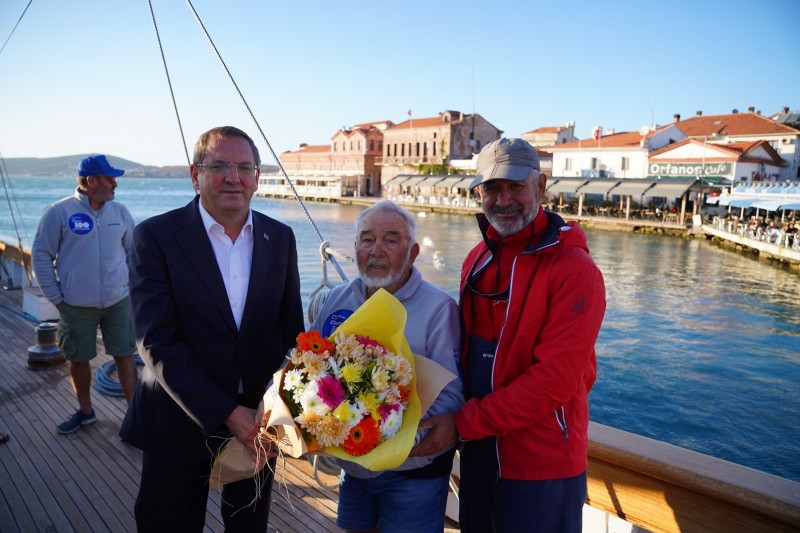 Ayvalık Belediye Başkanı Mesut Ergin, Belediye Meclis Üyesi ve aynı zamanda İMEAK DTO Aliağa Yönetim Kurulu üyesi Ali Jale ile birlikte Ayvalık Cumhuriyet Meydanı’ndaki rıhtımda demirleyen ekipleri ziyaret etti. Başkan Mesut Ergin; “Bodrum’dan yola çıkarak Cumhuriyeti’mizin 100. yılını kutlamak amacıyla Ulu Önder Mustafa Kemal Atatürk’ün Selanik’te doğduğu evi ziyaret eden ve bu yıl 35.’si düzenlenen Bodrum Cup’un yelkenlilerini Ayvalık’ta karşılamaktan onur ve mutluluk duyduk. İstanbul Dolmabahçe’de Ata’mızı selamlayan, 13 yelkenliyi Cumhuriyet Meydanı’mızdaki rıhtımımızda ve mavi sularımızda misafir ediyoruz. Meclis Üyemiz Denizci Ali Jale ile birlikte ekipleri, yelkenlilerinde ziyaret ettik. Ayvalık’ın meşhur poyrazını yaran, maviyi yırtan, suları köpüklere boğan yelkenlilere tekrar kentimize hoş geldiniz diyorum. Puruvaniz neta, rüzgarınız kolayına olsun”. (Haber Merkezi)