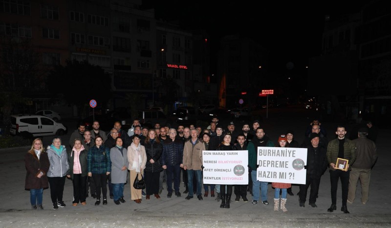 6 Şubat Depremi'nin yıl dönümü için saat 04.17'de Burhaniye Cumhuriyet Meydanı'nda anma töreni gerçekleştirildi.