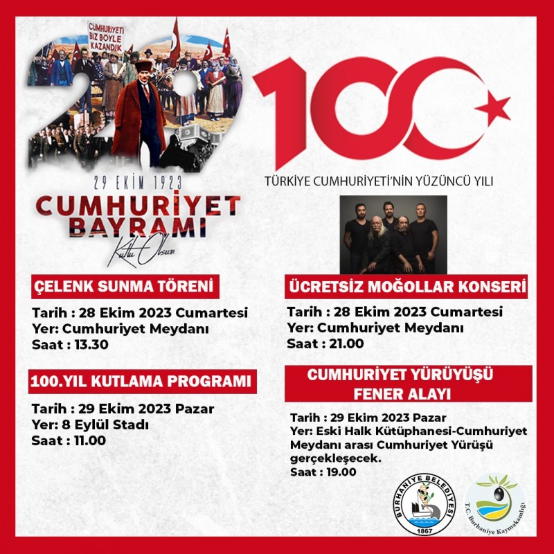 Burhaniye Belediyesi 29 Ekim Cumhuriyet Bayramı 100. Yıl Programı takvimini yayınladı.