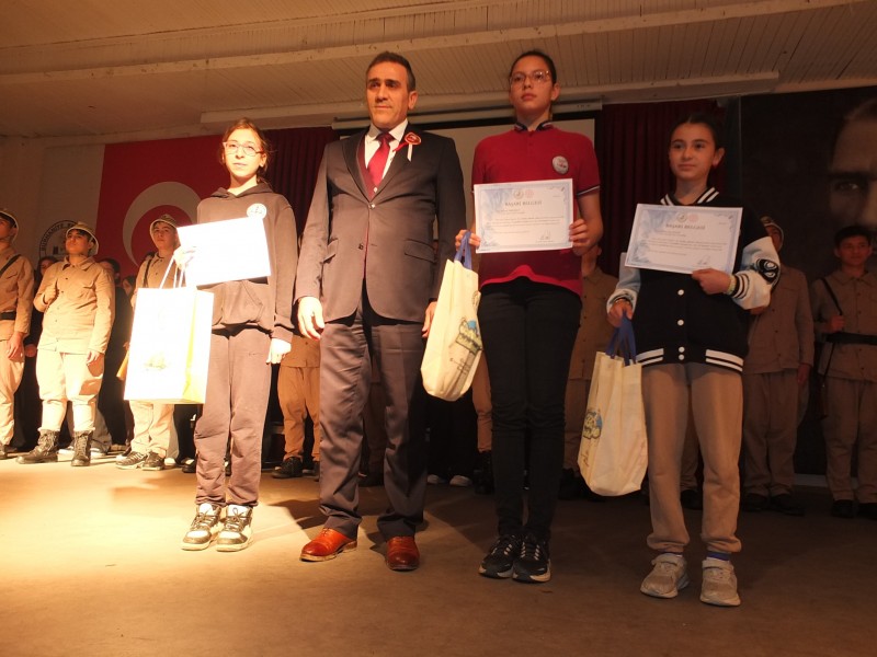 Cumhuriyet Meydanında Kaymakam İlyas Memiş, garnizon komutanı vekili Yarbay Yusuf Parmaksızoğlu ve Belediye Başkanı Ali Kemal Deveciler Atatürk Anıt'ına çelenk koyarken, saygı duruşu yapıldı ve İstiklal Marşı okundu. Sunuculuğunu edebiyat öğretmeni Sami Kızıcık’ın yaptığı tören Reha Yurdakul Salonunda devam etti. Burada öğrenciler, Çanakkale Destanı Oratoryosunu canlandırdı. Kocaseyit’in top mermisini namluya yerleştirmesi de canlandırılırken, duygusal anlar yaşandı. Daha sonra Çanakkale Geçilmez konulu resim ve şiir yarışmasında dereceye giren öğrenciler ödüllendirildi. Dereceye giren öğrencilerin ödülleri Kaymakam İlyas Memiş , garnizon komutanı vekili Yarbay Yusuf Parmaksızoğlu ve Belediye Başkanı Ali Kemal Deveciler tarafından takdim edildi. Kaymakam İlyas Memiş, Hasan Akın Anadolu Lisesinin organize ettiği programda emeği geçenlere teşekkür etti. Programın sonunda, Kaymakam İlyas Memiş ve diğer bürokratlarla ile gaziler törende görev alan öğrencilerle hatıra fotoğrafı çektirdi.