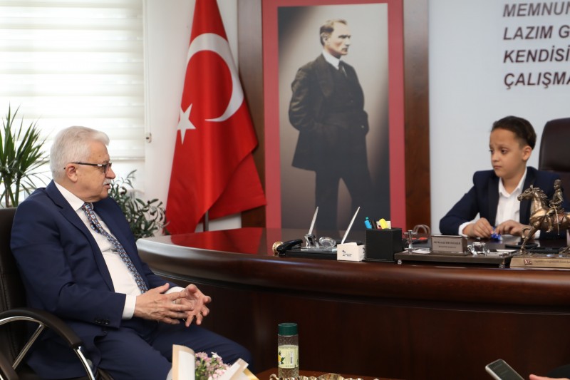 23 Nisan Ulusal Egemenlik ve Çocuk Bayramı kutlamaları dahilinde temsili koltuğa oturma töreni için Mehmet Akif Ersoy İlkokulu 4. Sınıf öğrencisi Can Kuyumcu, Burhaniye Belediye Başkanı Ali Kemal Deveciler’i makamında ziyaret etti.