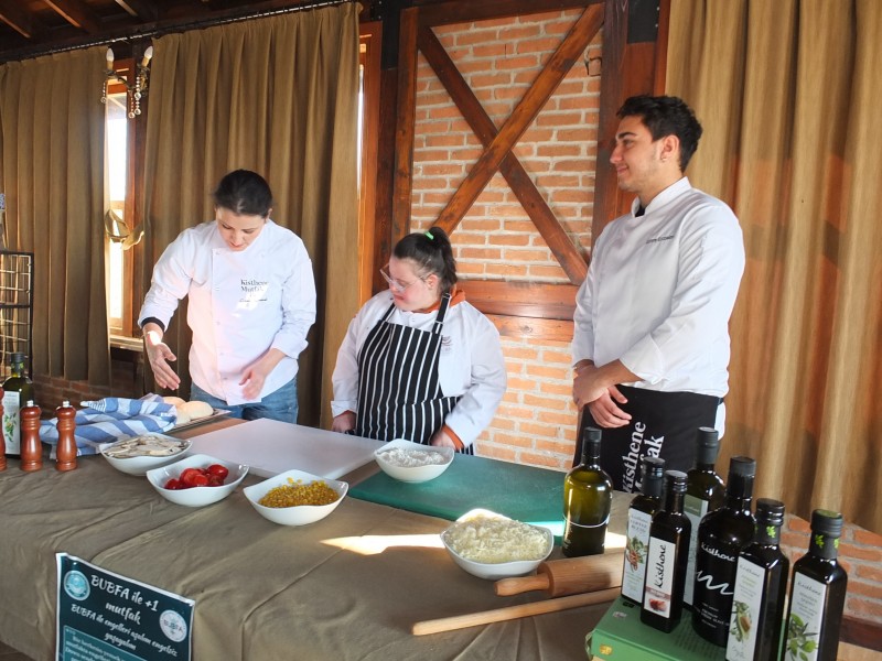 Şef Gizem Manisalı da, "Gastronomi öğrencileri ile bu gün Özlemle Yaşam'da bir etkinlik düzenledik, Artı-1 mutfak olarak bir takım çalışması yürütüyoruz. Down sendromlu gençlerimizle beraber, gastronomi öğrencilerimizle beraber şu anda 5 çeşit yemek yapıyoruz. Bu yemekleri ailelerine servis edecekler. Hep beraber mutlulukla bunları tüketeceğiz. Bugün güzel geçiyor. Aynı zamanda da down sendromlu çocukların gastronomi alanında istihdam edileceğini kanıtlamış oluyoruz" diye konuştu.