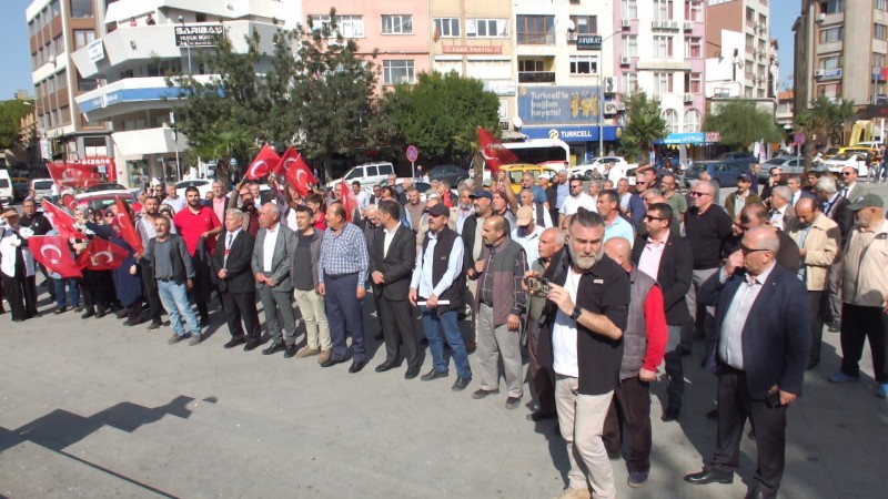Burhaniye ilçesinde, Oğuz Boyları Derneğinin öncülüğünde Filistin’e destek, İsrail’e tepki mitingi düzenlendi.