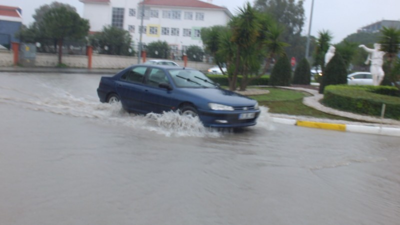 Burhaniye de öğlen saatlerinde başlayan sağanak ilçede, cadde ve sokaklar göle çevirdi. Özellikle alçak kesimlerdeki evlerin bodrum katlarını ve bahçelerini su bastı. Sürücüler, araçları ile suyla dolu yollarda ilerlemekte güçlük çekti. Diğer yandan belediye ekipleri, yollarda biriken suları tahliye ekmek için çalışma yaptı.