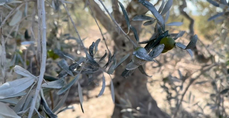 "Taş ocağı sorununu yıllardır yaşamaktayım. Bütün yetkililere başvurmama rağmen hiçbir sonuç alamadım. Şu anda mahkemelik olduk, mahkeme devam ediyor ama hiçbir netice yok. Her şeye itiraz ediyorlar. Tarlanın alt kısmına kavun ektim, kavunu yarı parasına sattım. Ziraatçi zarar kesti, ona da itiraz edildi. Ben arazimde toz istemiyorum. Yıllardır bu sıkıntıyı çekiyorum. Gitmediğim ve başvurmadığım bir yer kalmadı. Bana bu sorunu yaşatan Bursa Beton Taş Ocağı firması. Bu ürünleri, zeytinlerimi yıllardır bu şekilde ben toplayıp değerlendiremiyorum. Zeytinin üzerindeki toz bu şekilde. Bakın, elimle yapmama rağmen yağmurla dahi çıkmıyor. Bu şekilde devam ediyor. Ben bunu nasıl sileyim tek tek? Ben, yeri geldi kavunları bu şekilde tek tek sildim."