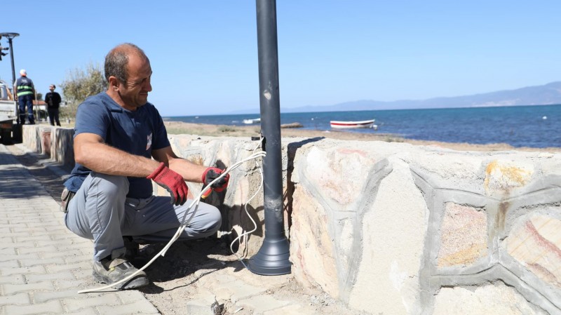Burhaniye Belediyesi, Kordonboyu Caddesi'ne, üstyapı çalışmaları çerçevesinde 17 yeni aydınlatma direği ekledi.