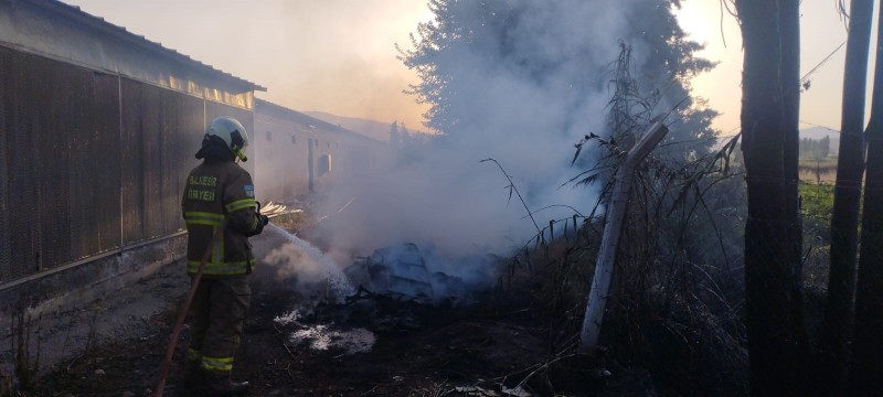 Sındırgı ilçesinde tavuk çiftliğinde çıkan çöp yangını, ekiplerin hızlı müdahalesiyle büyümeden söndürüldü. Yangın depodaki dolu gaz tüplerine ulaşmadan söndürüldü.