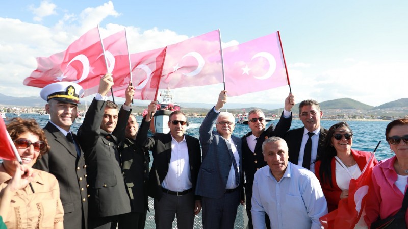 Cumhuriyet’in kuruluşunun 100. Yıl etkinlikleri kapsamında Burhaniye’de İskele Marina’da düzenlenen deniz korteji yoğun ilgi gördü.
