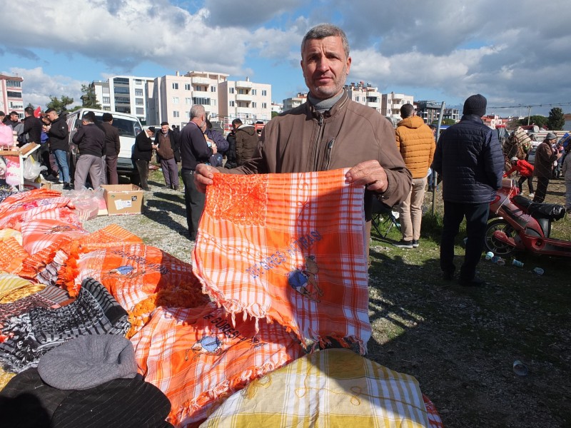 Burhaniye ilçesinde, düzenlenen Deve Güreşlerinde tezgah açan Mehmet Karacaoğlu’nın sattığı deveci üstlükleri ilgi gördü.