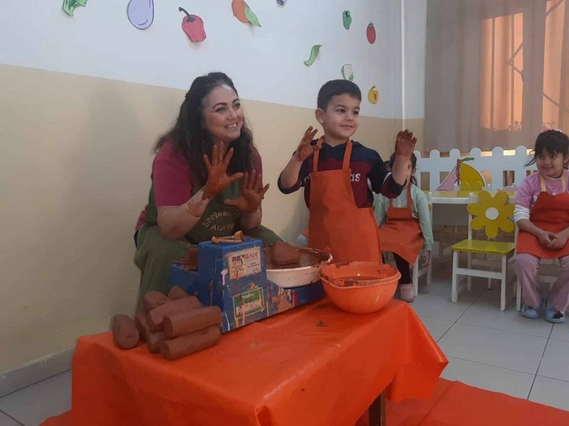 Sınıf Öğretmeni tarafından Milli Eğitim Bakanlığının göndermiş olduğu hikâye setinden ''Memleketim Nevşehir'' hikâyesi okunarak hikâyede anlatılan Nevşehir'de seramik sanatının yaygın olduğu teması işlendi. Minikler çanak, çömlek, kil, çömlekçi gibi yeni kelimeleri uygulama yaparak eğlenerek öğrendiler.