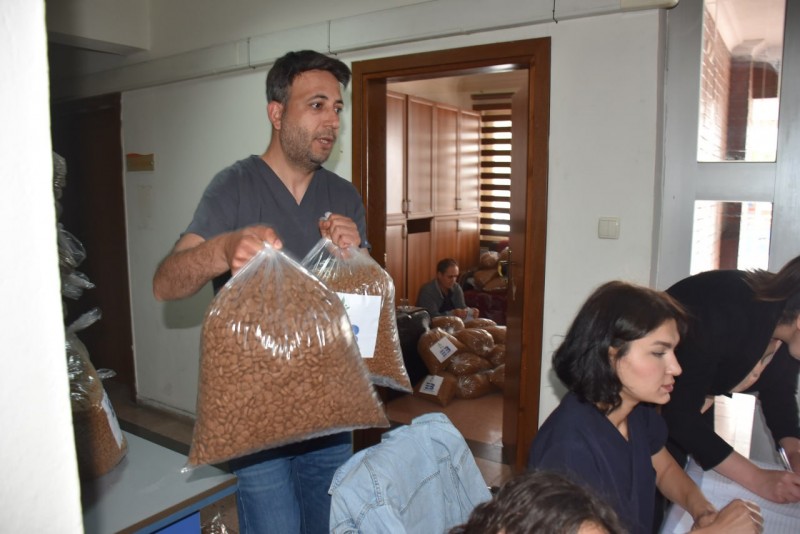 5 kiloluk poşetler halinde kedi ve köpek mamasının dağıtıldığı etkinliğe, vatandaşlar yoğun ilgi gösterdi.