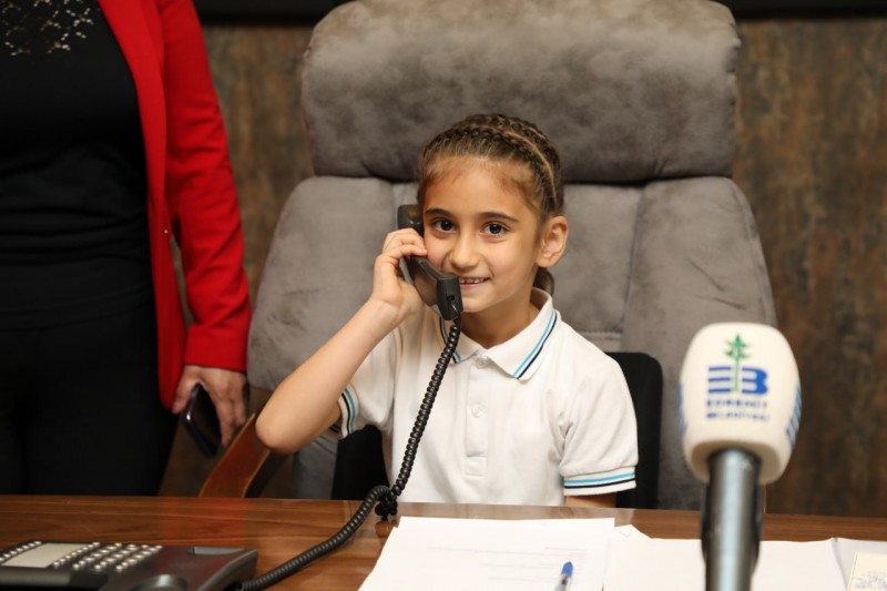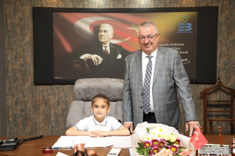 Başkan Ertaş, 23 Nisan Ulusal Egemenlik ve Çocuk Bayramı sebebiyle Belediye Başkanlığı koltuğunu Karagözoğlu ilkokulu 1/B sınıfı öğrencisi Begüm Taşkıran’a bıraktı.