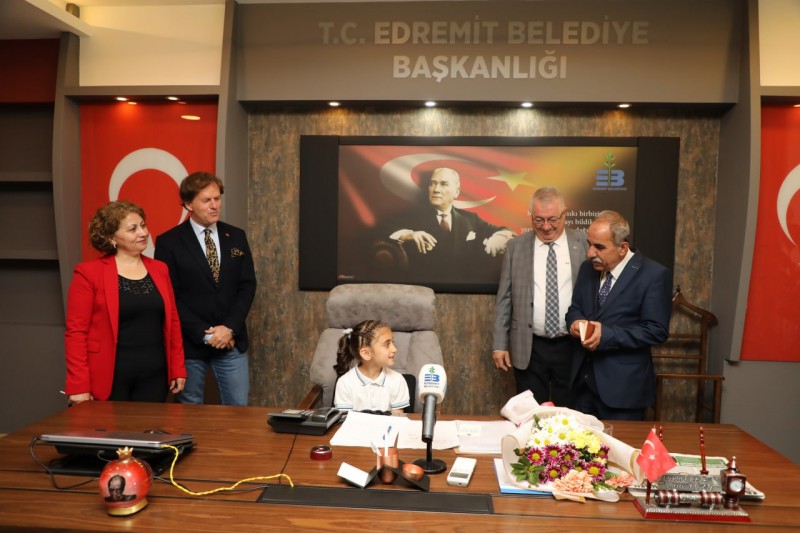 23 Nisan Ulusal Egemenlik ve Çocuk Bayramı sebebiyle Edremit Belediye Başkanı Mehmet Ertaş, koltuğunu Karagözoğlu İlkokulu öğrencisi Begüm Taşkıran’a devretti. Çocuk Başkan Taşkıran, Edremit’in en temiz ilçe olması için talimat verdi.