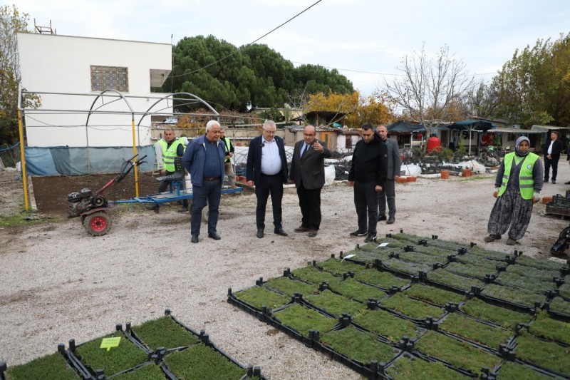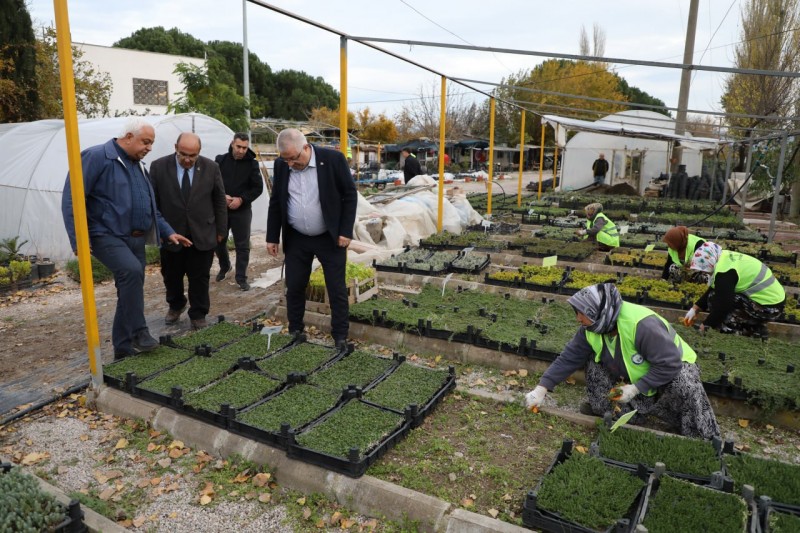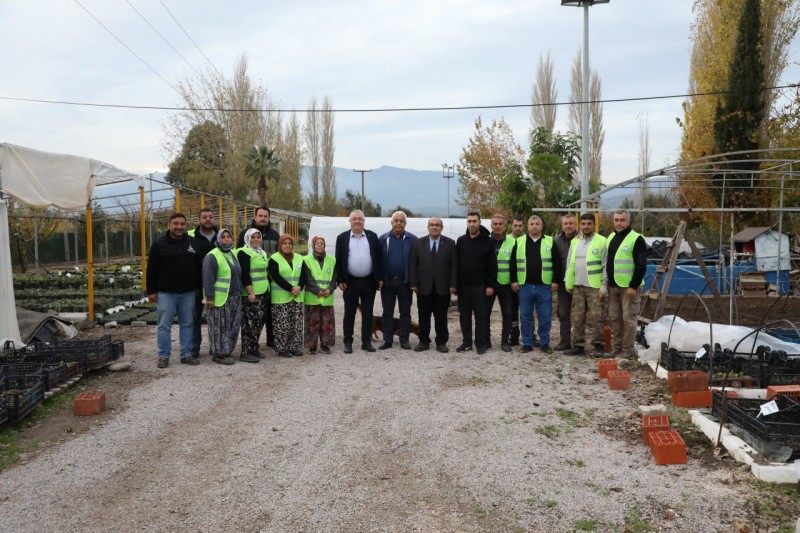 Edremit Belediye Başkanı Mehmet Ertaş, Edremit Ziraat Odası Başkanı Ali Yılmaz Diker ile birlikte fidanlığı ziyaret ederek çalışmaları yerinde inceledi.