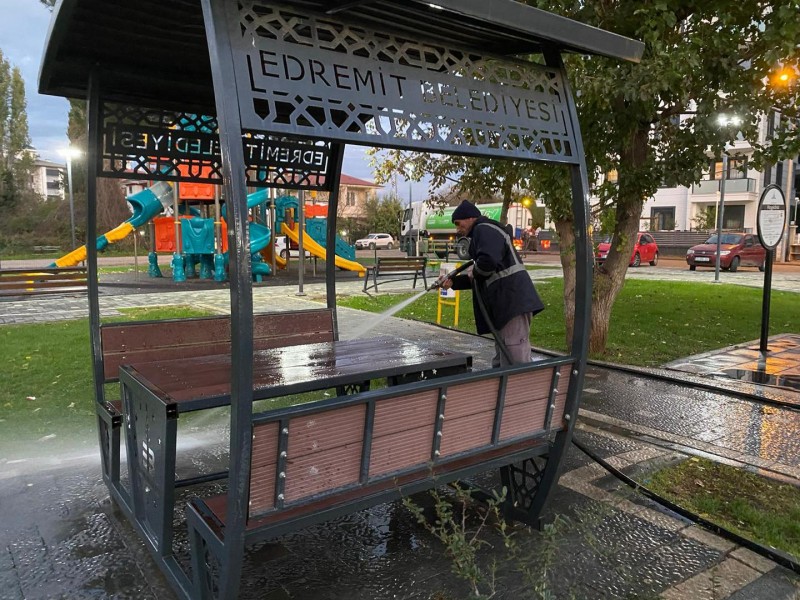 Edremit Belediyesi, ilçede etkili olan olumsuz hava koşullarının ardından kent genelindeki parklarda kapsamlı temizlik çalışmaları gerçekleştirdi. Gün içinde vatandaşlar tarafından yoğun şekilde kullanılan parklar, belediye ekipleri tarafından akşam saatlerinde detaylı şekilde temizlenerek yeni güne hazır hâle getirildi.