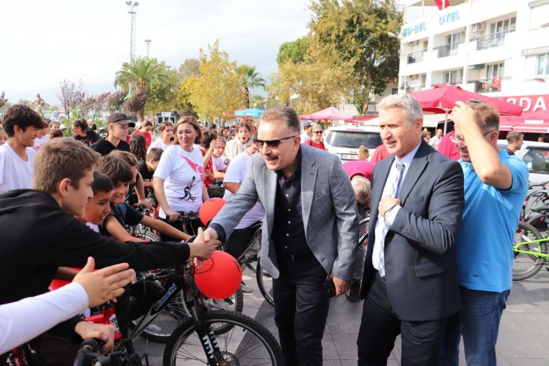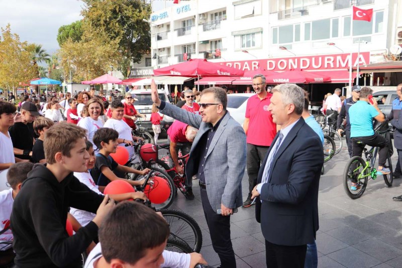 Edremit Kaymakamı Ahmet Odabaş, İlçe Milli Eğitim Müdürü Yaşar Ciğer beraberinde yüzlerce bisikletli ile bisiklet turunu tamamladılar. Kaymakam Ahmet Odabaş tüm katılımcılara hitap ederek ‘Cumhuriyet coşkusunun yüzyıllar boyu yaşanacağını belirterek katılımcılara teşekkürlerini sundu’. (Edremit Belediyesi)